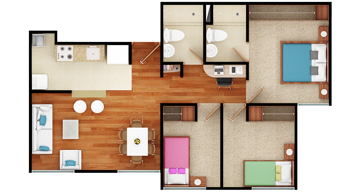 Arrayanes es un proyecto de vivienda que destaca por su diseño funcional, su arquitectura moderna y su enfoque en el bienestar de la comunidad. Con nuestra colaboración en diseño y en la visualización 3d, representamos cada detalle de este desarrollo a través de visualizaciones realistas que permiten apreciar la distribución interior, las zonas verdes y la armonía del conjunto. Sus planos y renders revelan espacios bien aprovechados, ambientes luminosos y una organización que prioriza la comodidad y el estilo de vida contemporáneo.
