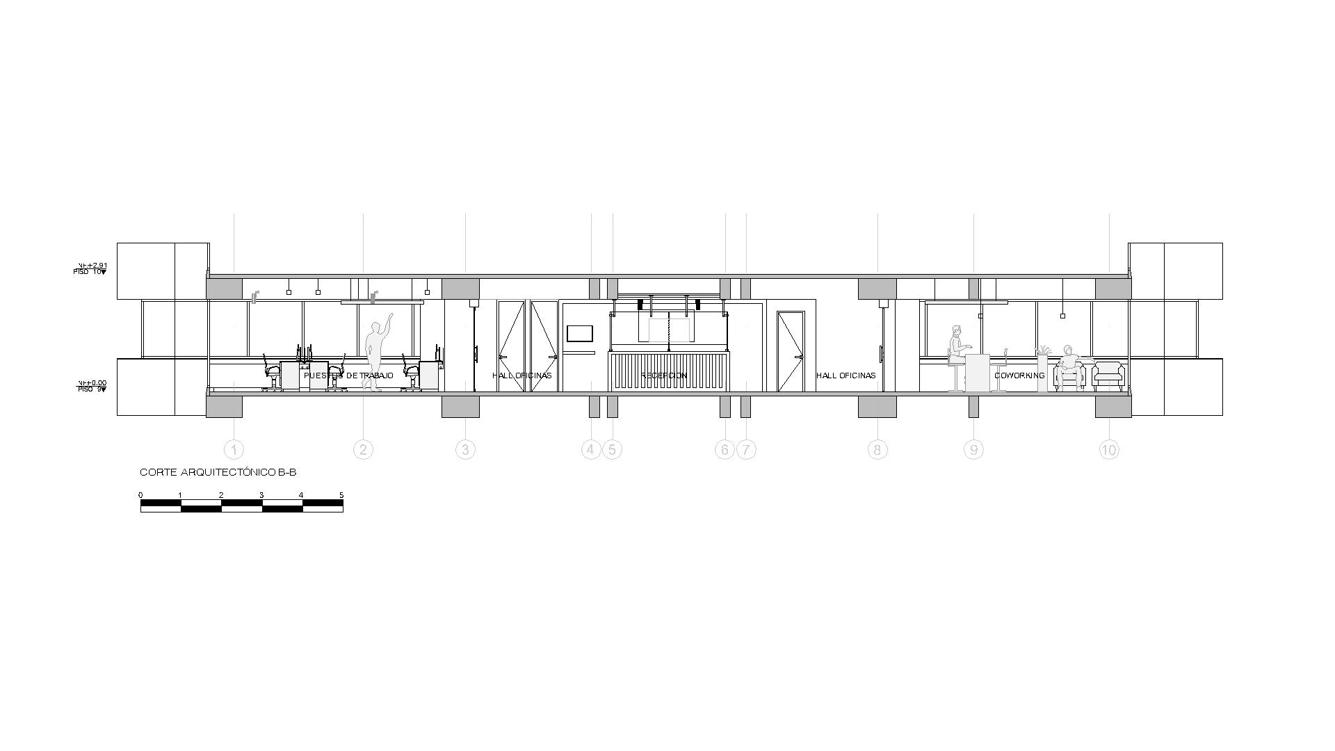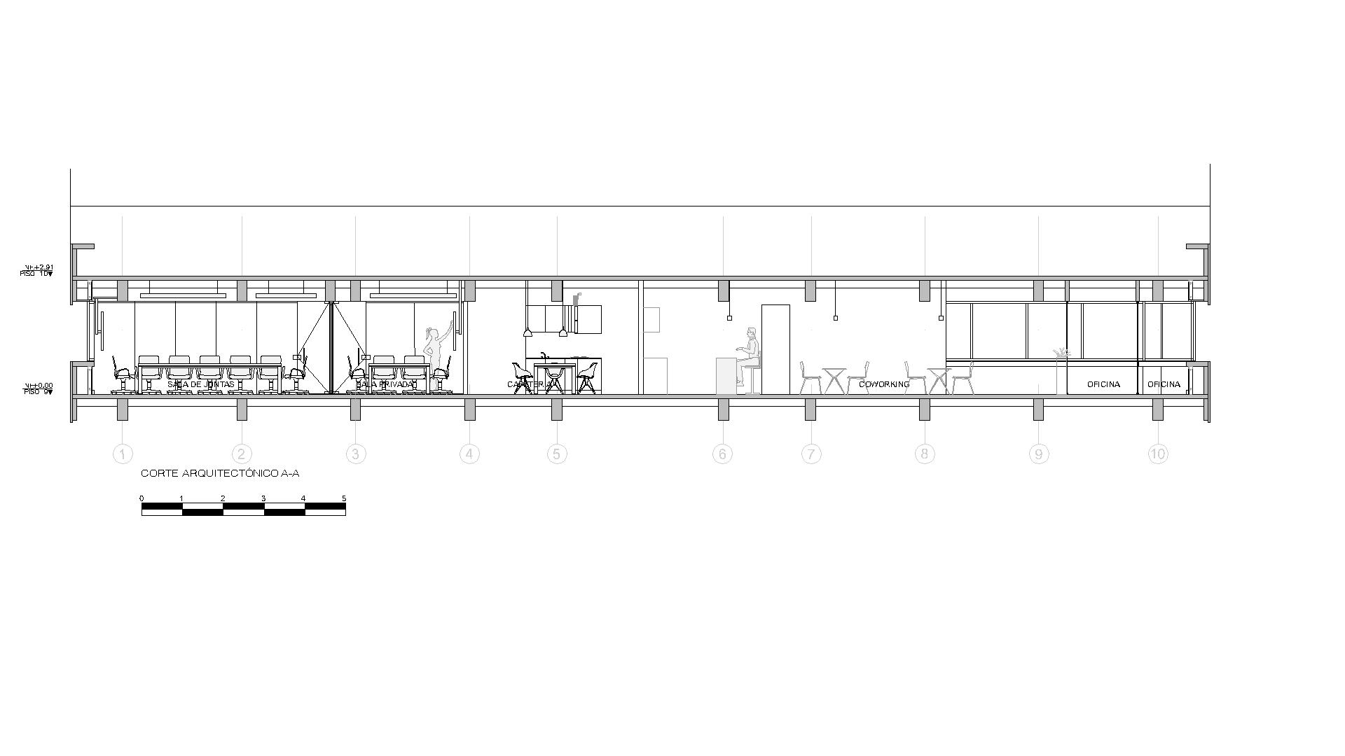 Cada ambiente —desde la recepción hasta las estaciones de trabajo y la sala de juntas— fue pensado para optimizar la productividad, la iluminación natural y la ergonomía.
